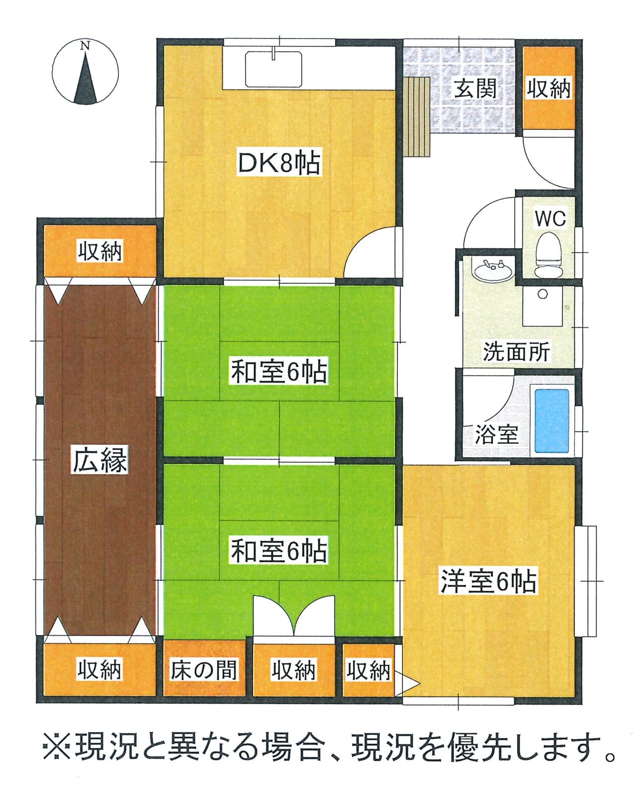 間取り内訳 和室6.0帖/和室6.0帖/洋室6.0帖/DK8.0帖 接道状況 一方 接道